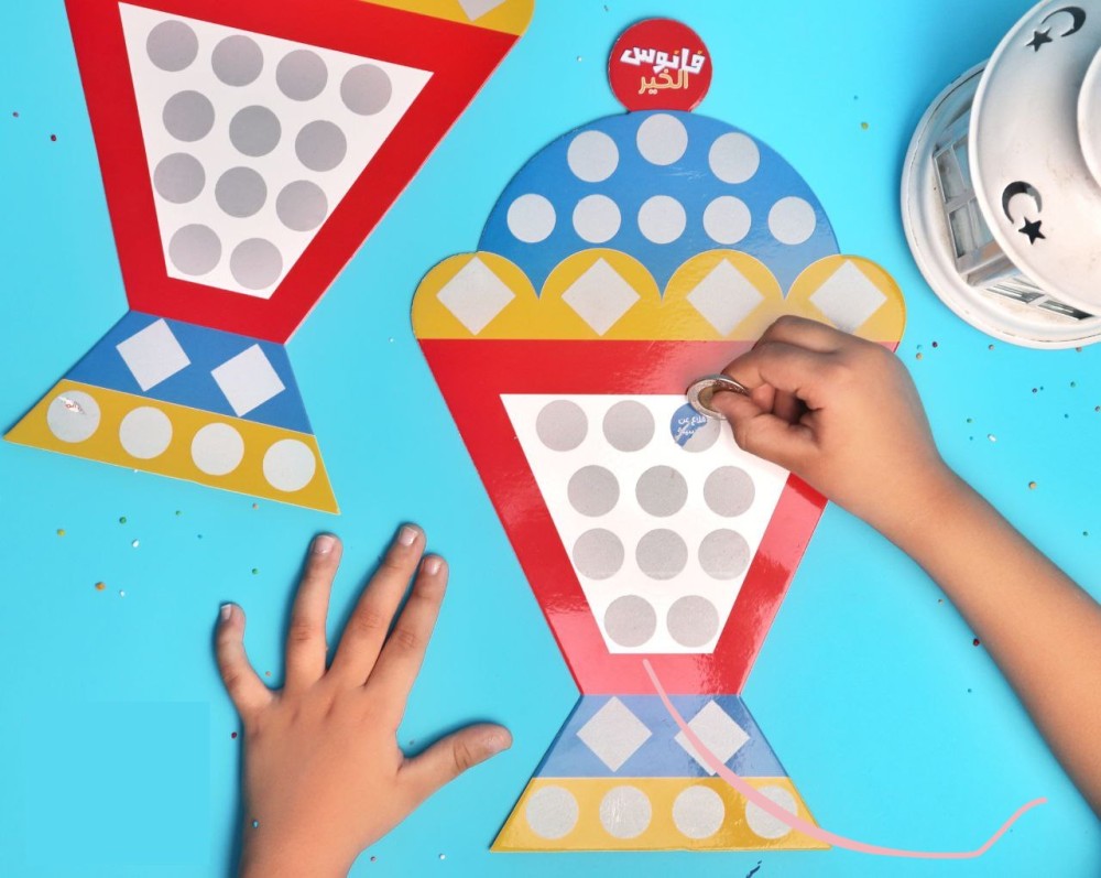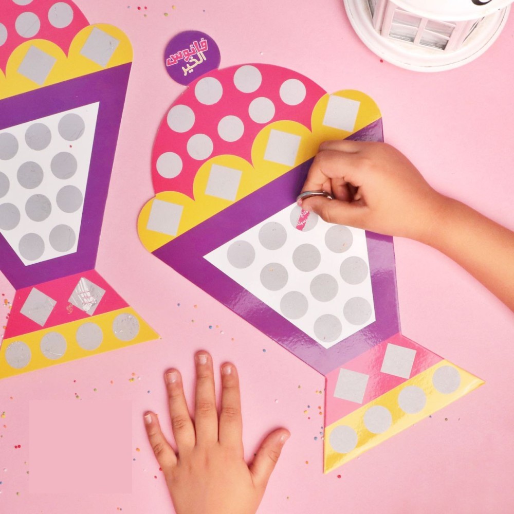 عبارة عن فانوس من الورق المقوى يحتوي على 30 عمل ، يكشط الطفل كل يوم و ينفذ العمل المطلوب